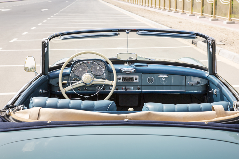 This 1962 Mercedes is housed in Dubai, United Arab Emirates as part of a vintage car collection.