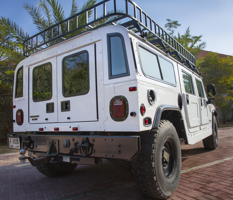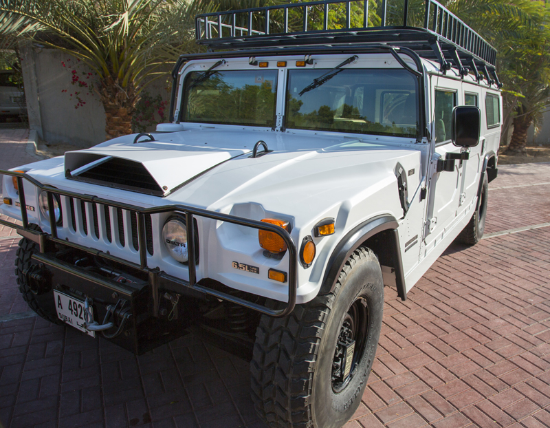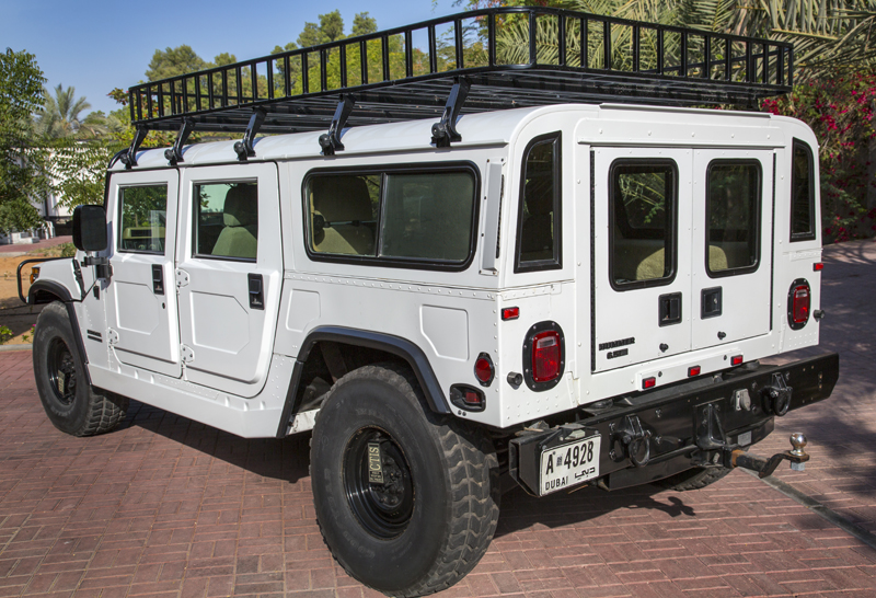 Produced on the same assembly line as the Humvee, the H1 also shares numerous parts from its military cousin, including the frame, major body panels, brakes and axles. Renowned for its off-road capabilities, the wide-track H1 also features innovations such as a tire inflation system, where the driver can hit a switch to reduce tyre pressure for off-road use or increase it for highway conditions.